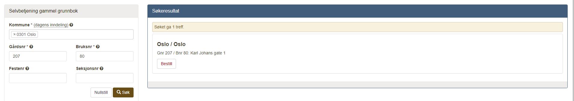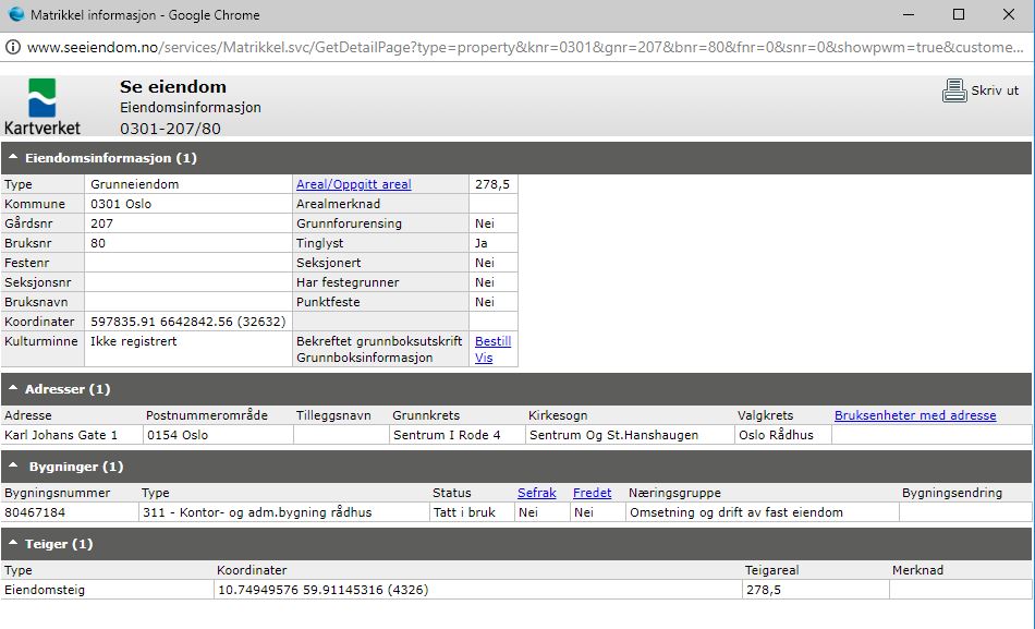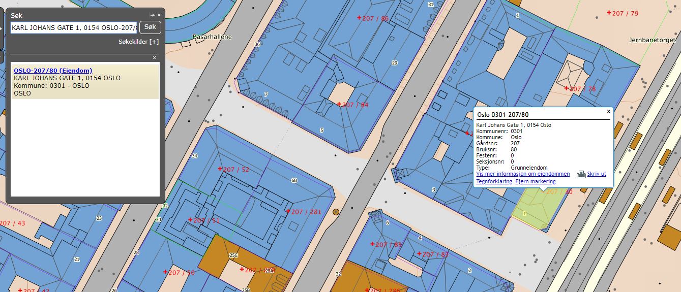 Here you can search for the address you are looking for. We use the address “Karl Johans gate 1 i Oslo” as a starting point for this example.