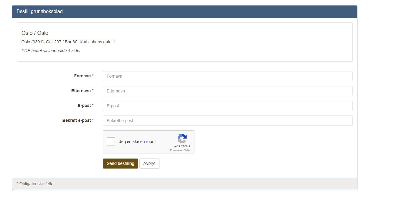 2. The press “Bestill” (order) to get the information on the property sent to you in an e-mail.