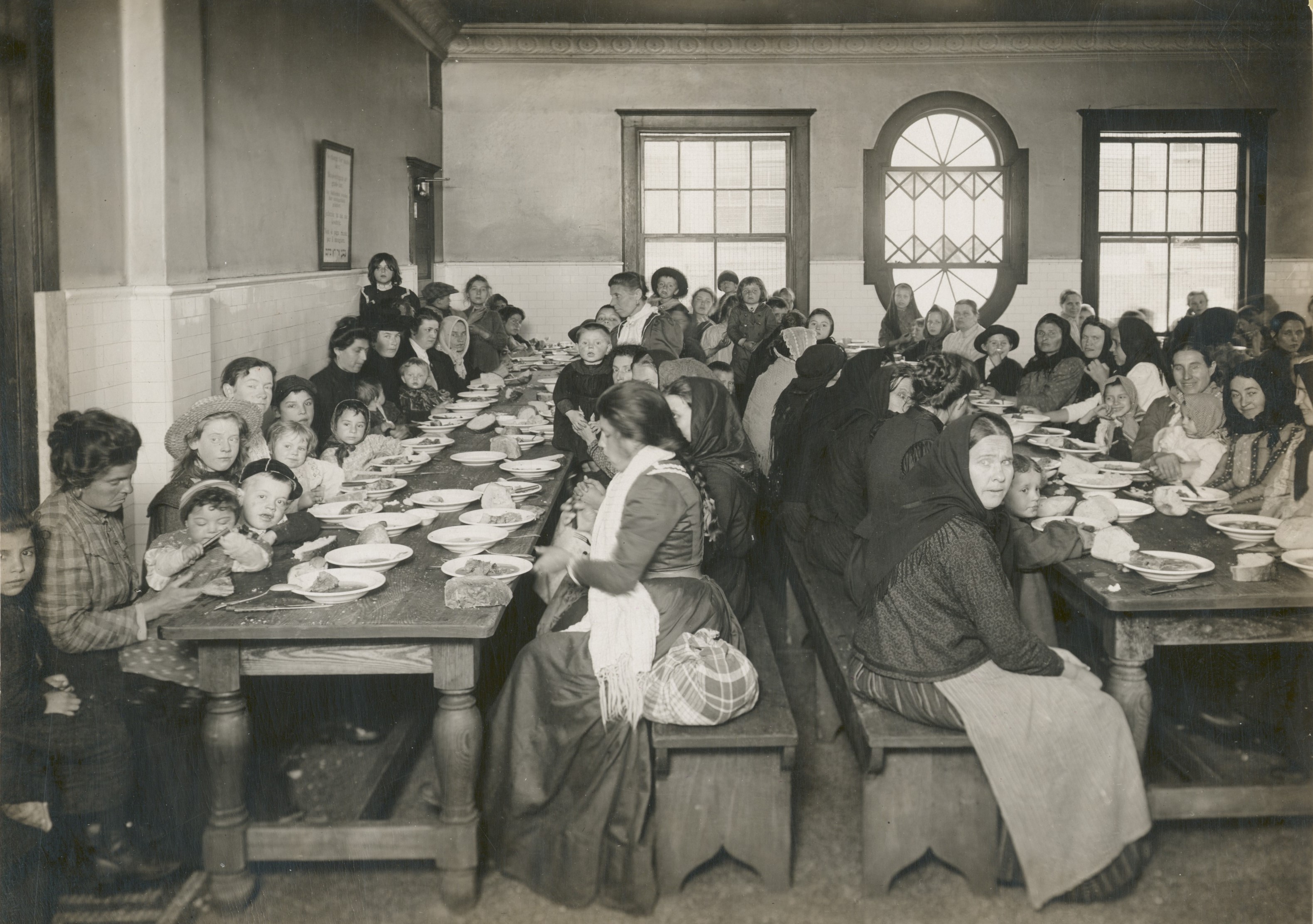 The first couple of years in a new country were often though, so the small goods you could get your hands on were good to have. here you can see emigrants eating a free meal on Ellis Island. (Photo: Edwin Levick/ New York Public Library)
