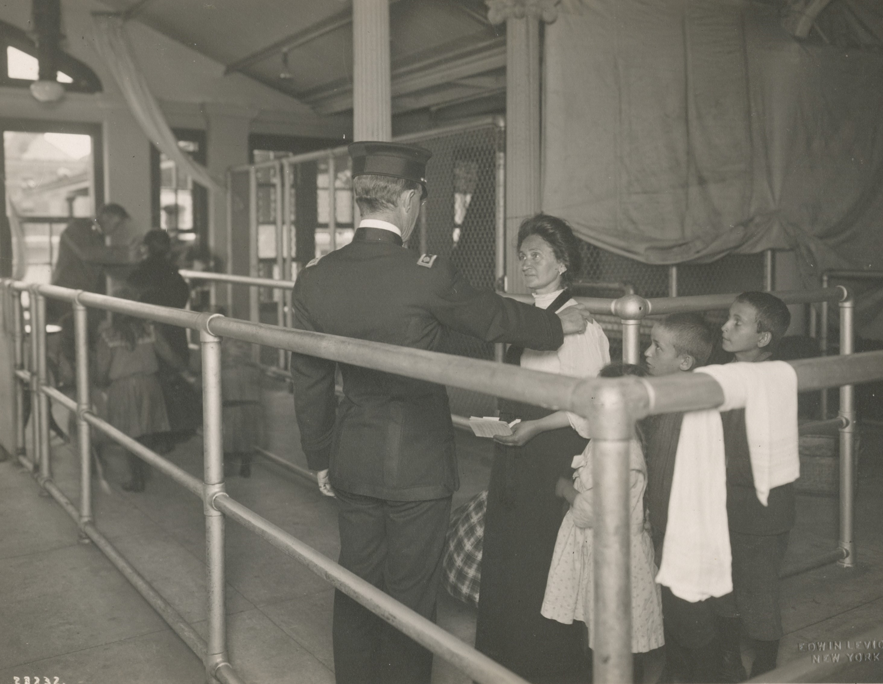 This is a picture of a mother and child undergoing a medical assessment on Ellis Island. (Photo: Edwin Levick/ New York Public Library)