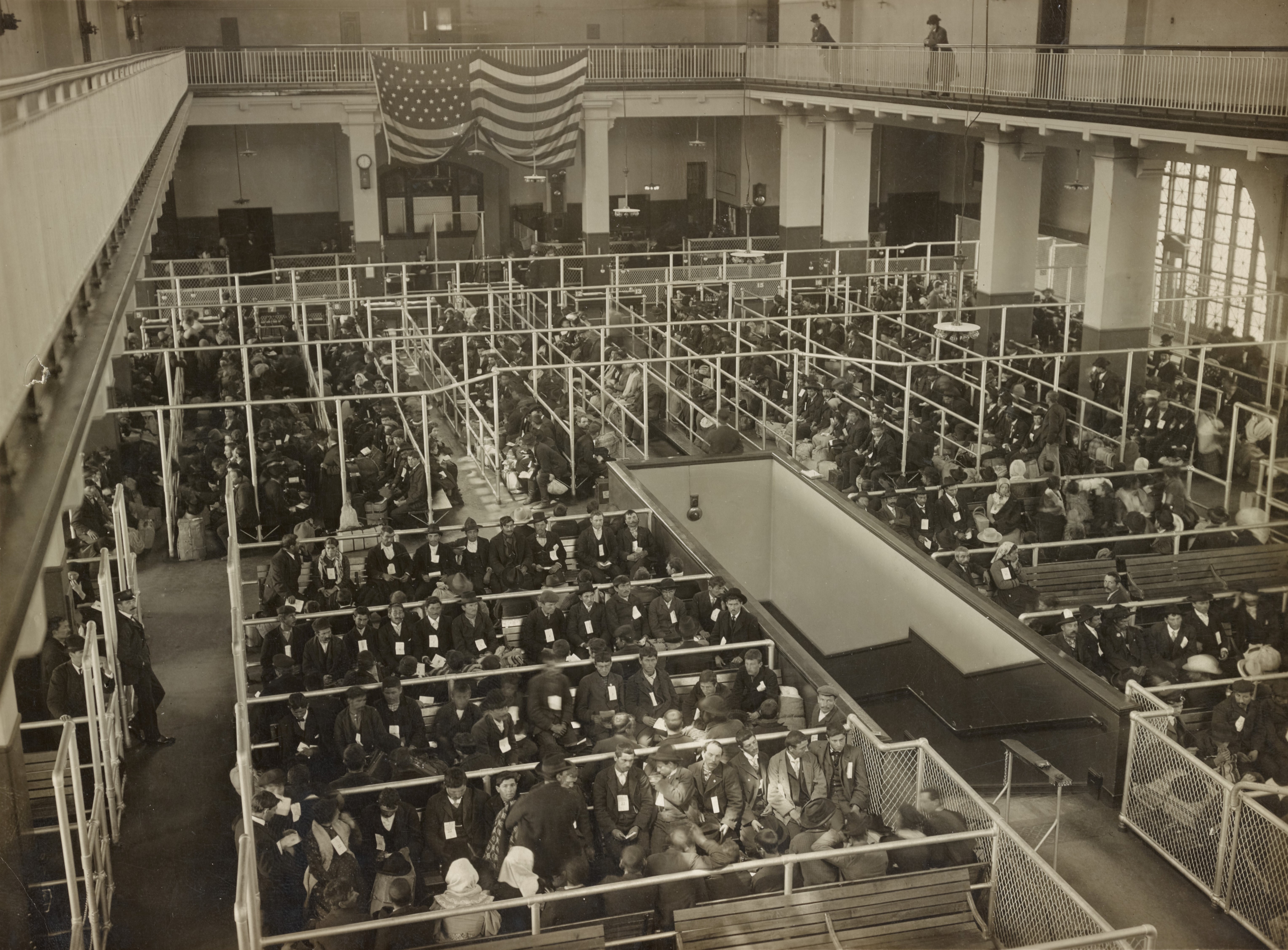 The arrival hall on Ellis Island could be pretty full. These people are sitting in th registration room, and they have passed the mental assessment. (Photo: Edwin Levick/ New York Public Library)